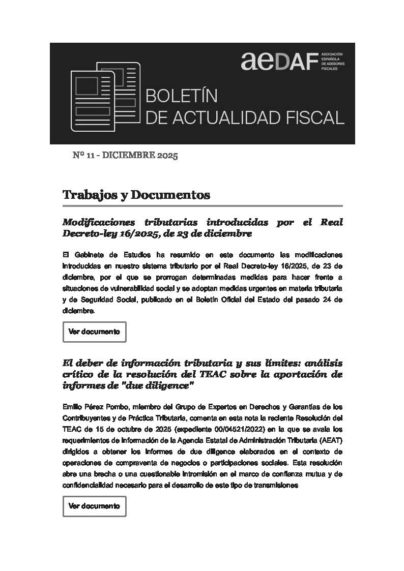 Boletín de actualidad fiscal nº 11 Gallery Boletín de actualidad fiscal nº 11 Documentazione Boletín de actualidad fiscal nº 11 Ariadna Rius2025-12-30T14:04:44+00:00martedì, Dicembre 30, 2025|Documentazione|